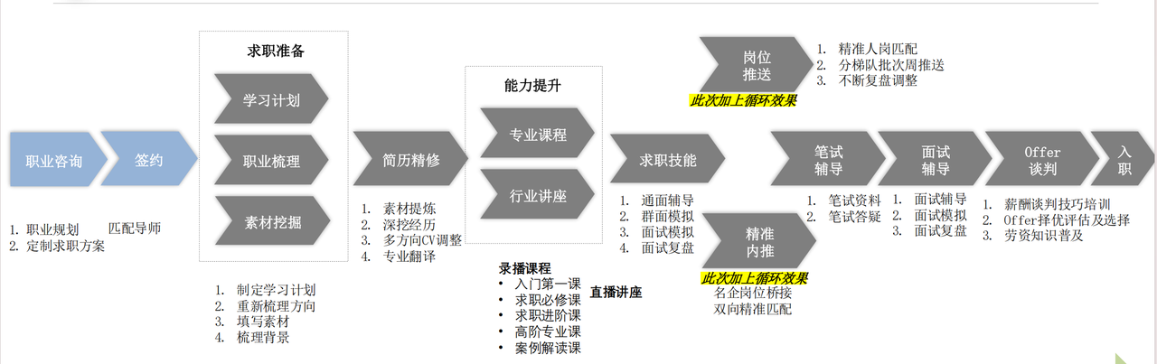 从初期的职业定位、中英文简历精修,到中期的定制化岗位推送、不限次数的1v1模拟面试、行业导师专业辅导,再到后期的Offer选择与薪资谈判,途鸽构建了多达10个关键环节的标准化服务SOP。